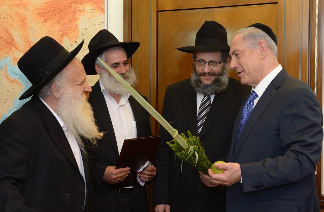 Prime Minister Netanyahu Reciving the Lulav and Esrog from Chabad Delegation