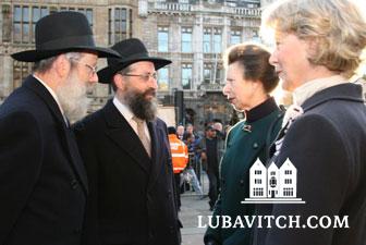 Rabbi Reuven Cohen and Rabbi Yirmya Angyalfi, Chabad-Lubavitch representatives to Leeds, England, welcomed Princess Anne, the only daughter of Queen Elizabeth, to the public Menorah in Leeds. This Chanukah, the city celebrated 25 years of the first giant Menorah in Europe.