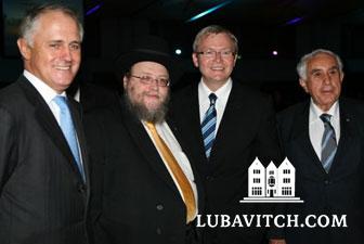At his first opportunity to address the Jewish community since becoming Prime Minister, Kevin Rudd saluted Chabad’s Yeshiva Centre in Sydney, Australia, and the social and humanitarian programs that have been developed under the leadership of Rabbi and Mrs. Pinchus and Penina Feldman.