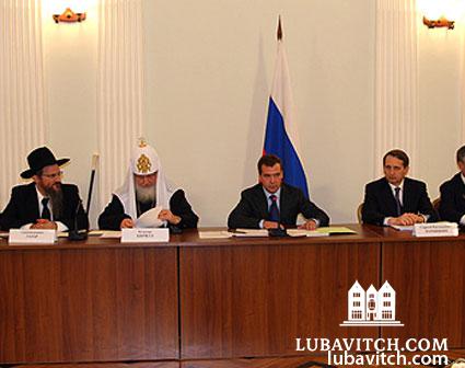 (lubavitch.com) At a meeting Wednesday with religious leaders in Russia, President Dmitri Medvedev promised to instruct his staff and heads of security regarding policies of foreign clergy in Russia.