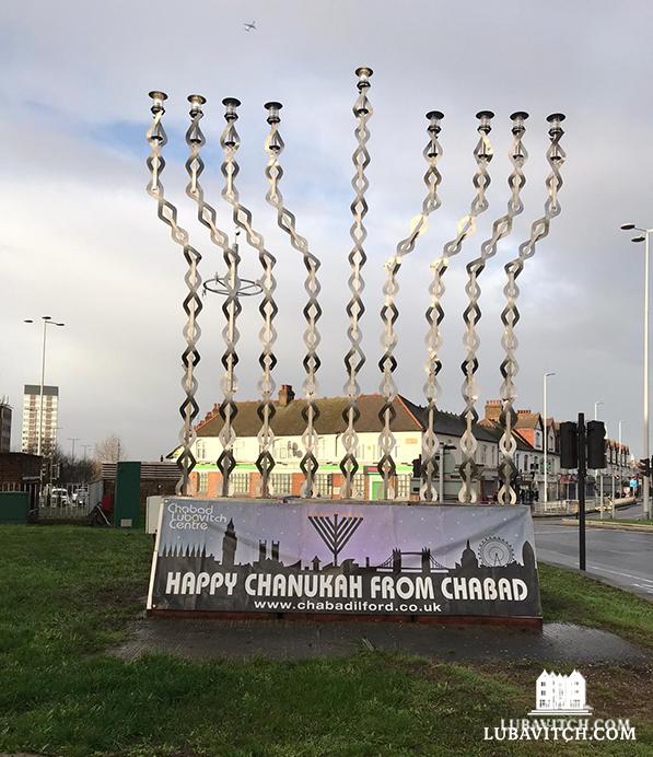 When Rabbis Aryeh Sufrin and Moshe Muller of Chabad of North East London and Essex first started erecting a giant electric menorah on the Gants Hill Roundabout in Ilford thirty-five years ago, it required weeks of preparation, hours to erect, an expensive crane, numerous volunteers and a street closure. But it was important to them that passersby see the menorah, are reminded of the holiday and connect with their Jewish identity.