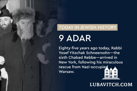 Eighty-five years ago today, Rabbi Yosef Yitzchak Schneersohn—the sixth Chabad Rebbe—arrived in New York, following his miraculous rescue from Nazi-occupied Warsaw. Here’s how Lubavitch News…