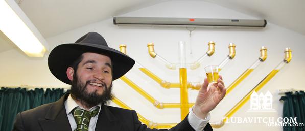 Two hundred people showed up at Buckhurst Hill Chabad to watch the lightning of a 7 foot menorah built out of clear piping filled with…