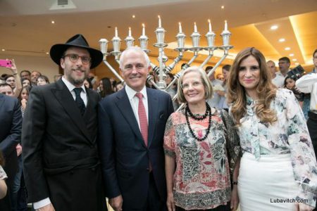 Australian Prime Minister Malcolm Turnbull and his wife Lucy joined the pre-Shabbat menorah lighting ceremony at the Central Synagogue of Sydney this past Friday. “We…