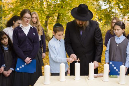 Some 30 students at the Jewish Traditional School in Berlin joined Rabbi Yehuda Teichtel of Chabad of Berlin to light candles and sing prayers in…