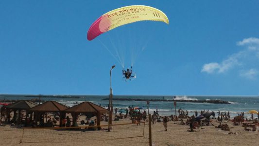 For six years, this paraglider has been making waves on the beaches of Tel Aviv. Each Friday, tens of thousands of tourists and residents look…