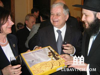 (lubavitch.com) Poland’s President Lech Kaczynski recently took time to learn about the holiday of Passover and its rituals from his country’s director of Chabad activities, Rabbi Sholom B. Stambler.