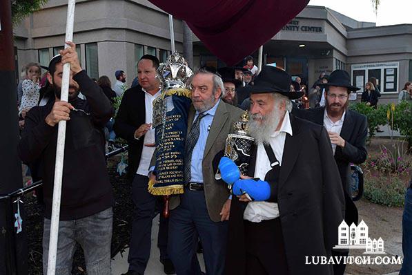 Rabbi Yisroel Goldstein, Chabad of Poway’s indomitable founder and leader shared Rabbi Chanowitz’s sentiment at the Torah dedication ceremony. “We’re going to take the Torah out every week and march it around the shul. We’ll touch the Torah and blow a kiss to Lori. She’s going to feel our connection to the Torah and our connection to her.”