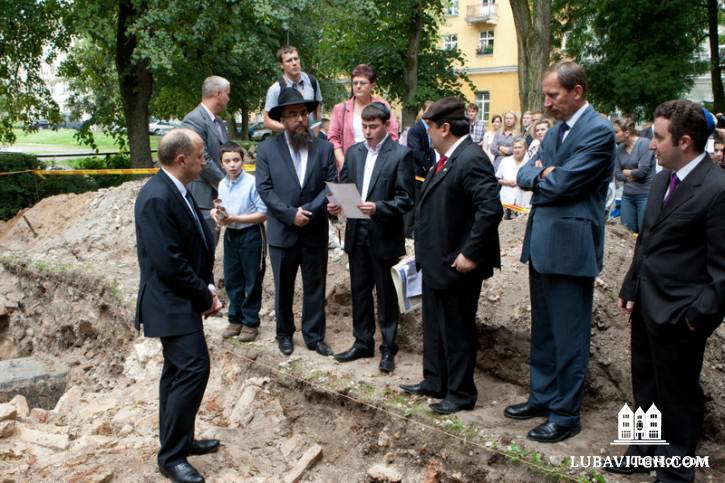 “This is a very emotional discovery for us here and allows us to make a bridge to our authentic past,” Emmanuel Zingeris, Member of Parliament and President of the project to restore the Jewish quarter of the old town of Vilnius told lubavitch.com. “We now have the precise spot where the holiest part of the Synagogue stood, and it is under open sky.”