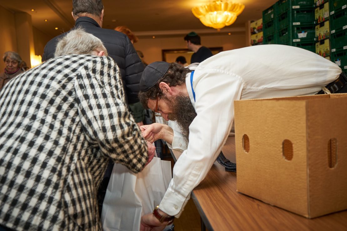 This year, in the framework of annual efforts to provide for disadvantaged members of the Jewish community of Berlin, over 1,000 welfare-supported Jewish families received generous food baskets in honor of the holiday of Passover. The packages, which were distributed by Chabad emissaries Rabbi Yehuda Teichtal and Rabbi Shmuel Segal, were filled with a wide assortment of food products and staples, including matzah, wine, and specialty items imported from Israel that enabled underprivileged families to celebrate the holiday joyfully.