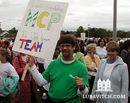 Support poured in from near and far, very far. Miriam Defilipp, a sophomore in high school from Charlotte, NC, flew in with her mom for the walk and caught a plane home the same day. As a counselor in the Friendship Circle’s first ever day camp this summer, Defilipp discovered her camper “had feelings and understood things, even though she did not look like she did.” Defilipp raised $1,358 from neighbors in friends her state, and teamed up with Chaya Weiss and Devorah Groner of Detroit for the walk.