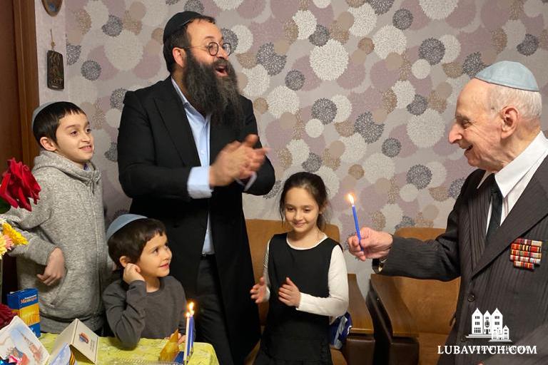 When the rabbi visited Yeffim Isakovich at his home on Thursday, the fifth night of Chanukah, to celebrate the Red Army Veteran’s 100th birthday, Yeffim marked another milestone as he lit the menorah for the first time in his life.