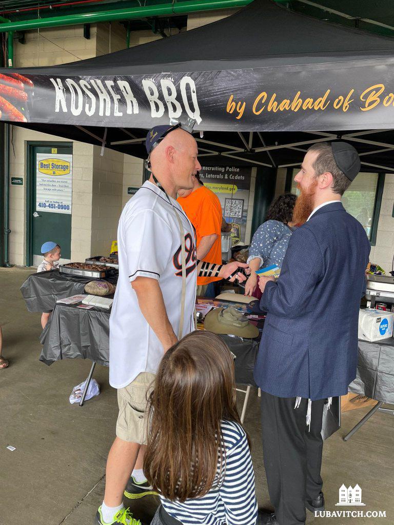 On August 24th, Bowie baseball fans celebrated the annual Jewish Heritage Day at Prince George’s Stadium — home of the Minor League Chesapeake Baysox. Beyond the festivities on the field, it was the first time kosher food was available at the ballpark. Chabad of Bowie set up a grill stand, serving burgers and hot dogs to fans. “It was amazing to be out there on the concourse helping out,” said Pam Malech, a local community member. “Some people said it was the first time they’d actually been able to eat kosher at a ballgame.”