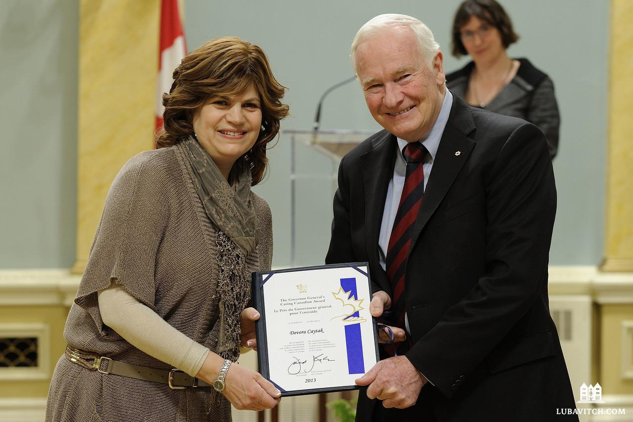 On Monday April 6, Mrs. Devora Caytak was among 46 Canadians chosen from among 500 nominees, who received the Governor General’s Caring Canadian Award for reaching out to others.