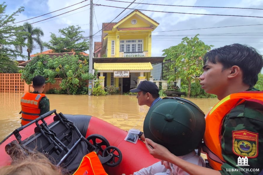 In the central Vietnamese tourist destination of Hoi An, the Thu Bồn River reached a 60-year high, flooding nearby neighborhoods and leaving more than a dozen dead. Chabad-Lubavitch of Hoi An, located just two blocks from the waterfront, was partly submerged under water. Chabad reps to Hoi An, Rabbi Mendel and Rocheli Fridman, were stuck with their young children on the second floor of their nearby home for nearly three days, with neither power nor running water, as water levels continued to rise.