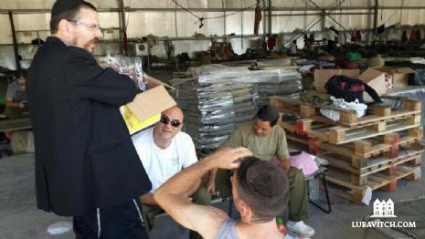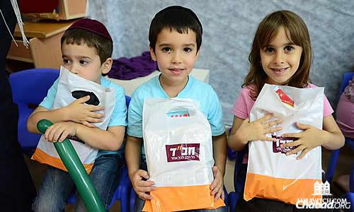In nearby Ofakim, local shliach Rabbi Shneur Kenig leads a team of volunteers who visit school children in their homes, bringing them treats and games.
