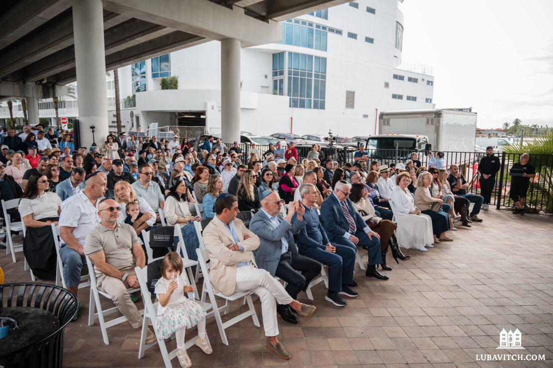 A two-part grand opening celebrated the new center. The first event, a community-wide ribbon cutting, drew several hundred attendees, including Mayor of Sunny Isles Beach Larisa Svechin. During the ceremony, a brick from 770 Eastern Parkway in Brooklyn — Chabad-Lubavitch world headquarters — was embedded into the building’s wall, physically linking the new center to its spiritual source.