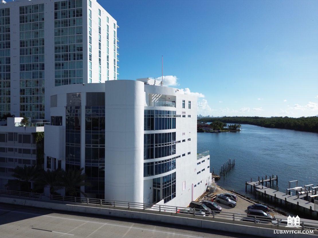 The 39,000-square-foot building rises six stories above Biscayne Bay, making it the first newly constructed synagogue in Sunny Isles Beach. Designed to serve every stage of Jewish life, it includes weekday and Shabbat sanctuaries, classrooms, offices, a library, and a waterfront multipurpose space overlooking the bay. A large ballroom hosts weddings, bar and bat mitzvahs, and communal celebrations, while a rooftop terrace offers sweeping views of Miami and the ocean beyond.