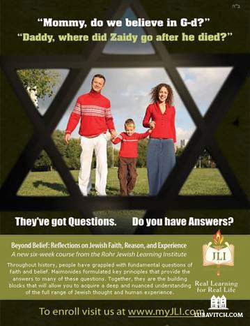 These ponderous questions are the impetus for a new course by Chabad's Rohr Jewish Learning Institute (JLI). Beyond Belief: Reflections on Jewish Faith, Reason, and Experience, is scheduled to begin in early February.