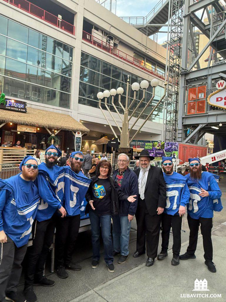 When Rabbi Levi Harlig, who now heads Friendship Circle of Las Vegas, was studying in London thirteen years ago, he went with friends to help out at a local Chabad Menorah lighting. The Rabbi there handed them Dreidel costumes to wear — and something clicked instantly. “We walked into the event and the whole place erupted,” he recalled. “You could feel the energy in the room.”