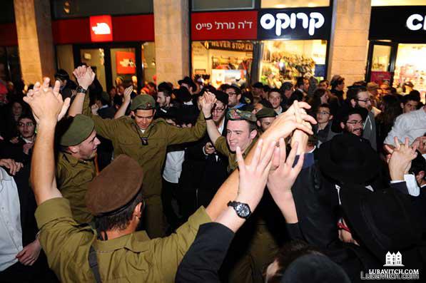 At the menorah lighting, the soldiers, on the top tier of the mall, were cheered by the crowd from below. “Tonight, we were not ‘lone’, we felt appreciated and celebrated by so many fellow sisters and brothers who came to show their support,” one soldier said of the event. “We felt like soldiers of one huge, united family.”