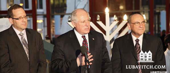 The Governor spoke of the message of Chanukah, of the triumph of light over darkness. He also thanked Chabad for the Menorah that had been set up in the lobby of the center.