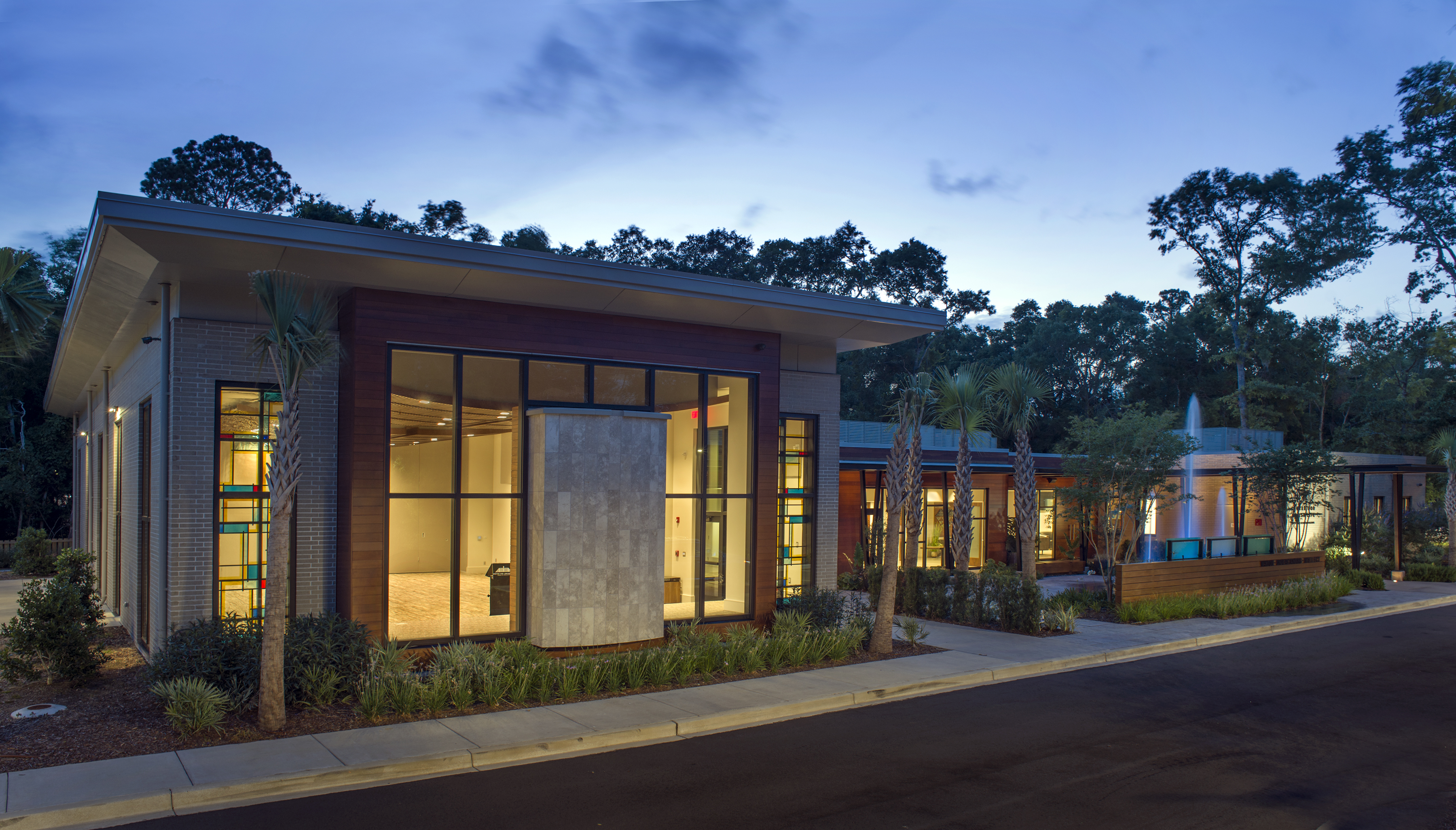 Sleek lines and the warmth of home create an unexpected harmony in Charleston’s Center for Jewish Life. Set back on three acres of wooded land at the foot of the Ravenel Bridge in the city’s Mt. Pleasant neighborhood, the architectural beauty is not, Anspach points out, a synagogue. “It’s an extension of the Refsons’ dining room.”