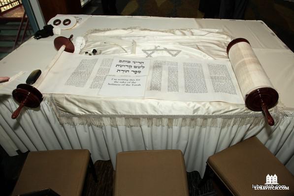 High on the evening’s program was the dedication of a Torah scroll in the memory of the Committee’s late director, Rabbi Jacob J. Hecht. Following the dedication guests were treated to a smorgasbord and a string quartet playing Chasidic melodies.