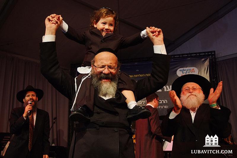 The evening began with the public recitation of memorial psalms for the Holtzbergs and the other victims murdered in Mumbai. It ended with festive Chasidic line dancing with  Moshe riding high on his grandfathers’ shoulders. Leading religious entertainer Avraham Fried performed a new memorial song “They Walked Together” based on the Biblical verse referring to Abraham’s binding of Isaac.