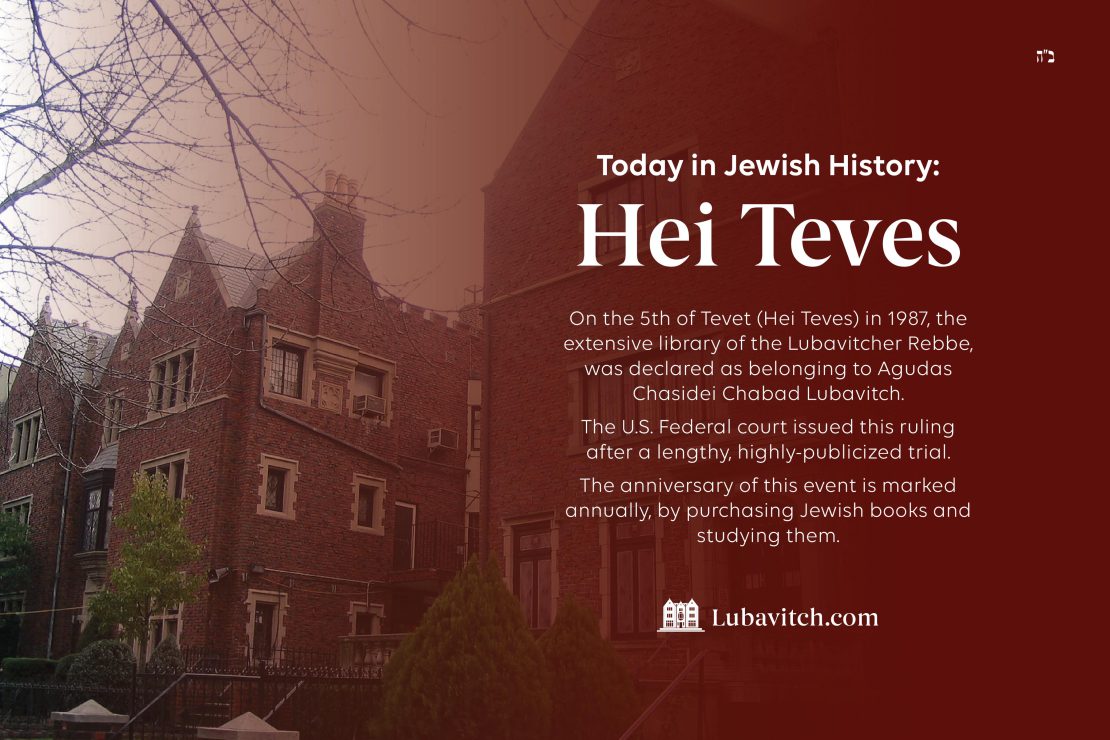 On the 5th of Tevet (Hei Teves) in 1987, the extensive library of the sixth Rebbe, Rabbi Yosef Yitzchak Schneerson, was declared as belonging to…