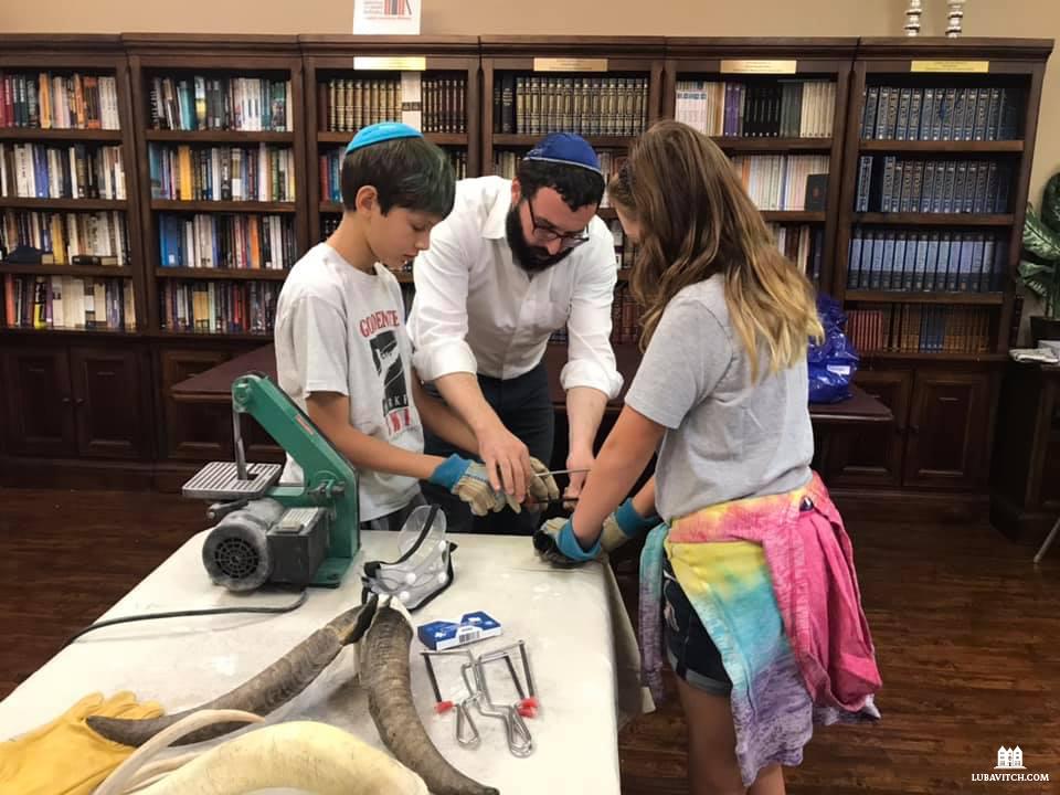 Isaac Rothchild and his sister Sara Rothchild, work on their own Shofar as they prepare for Rosh Hashana