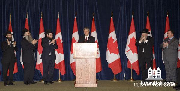 The Prime Minister spoke at a ceremony on Parliament Hill where he was joined by Citizenship, Immigration and Multiculturalism Minister Jason Kenney and other MPs who turned out to honor Chabad-Lubavitch representatives during a regional conference. There are 50 Chabad centers serving the Canadian Jewish population.