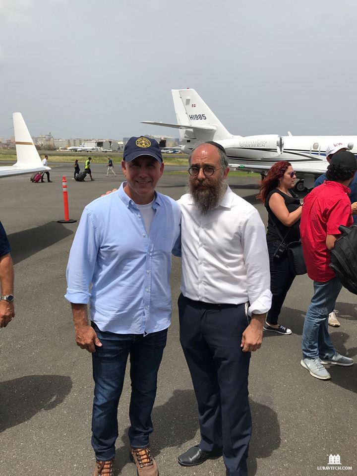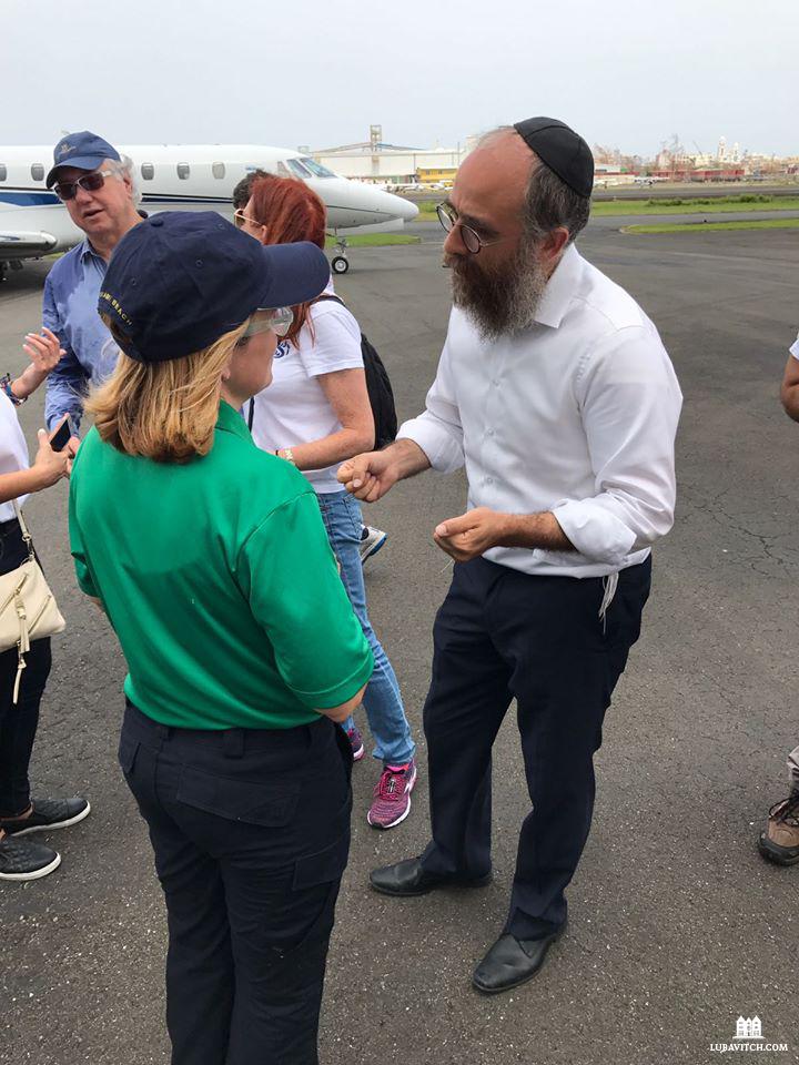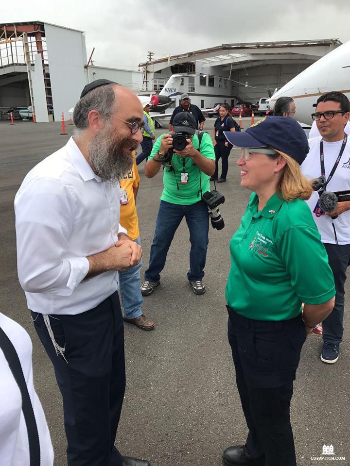 The need was so great that by Wednesday, a second plane delivered “thousands of pounds of canned food, emergency medical supplies, flashlights, batteries, and other goods critical to the relief effort.” The shipment was sponsored by the Falic family, owners of Duty Free Americas. As the plane rolled up on the tarmac, Rabbi Zarchi was joined by San Juan Mayor Carmen Cruz in welcoming Miami Beach Mayor Philip Levine, Honorary Israeli Consul to Puerto Rico David Efron, and Greater Miami Jewish leaders.