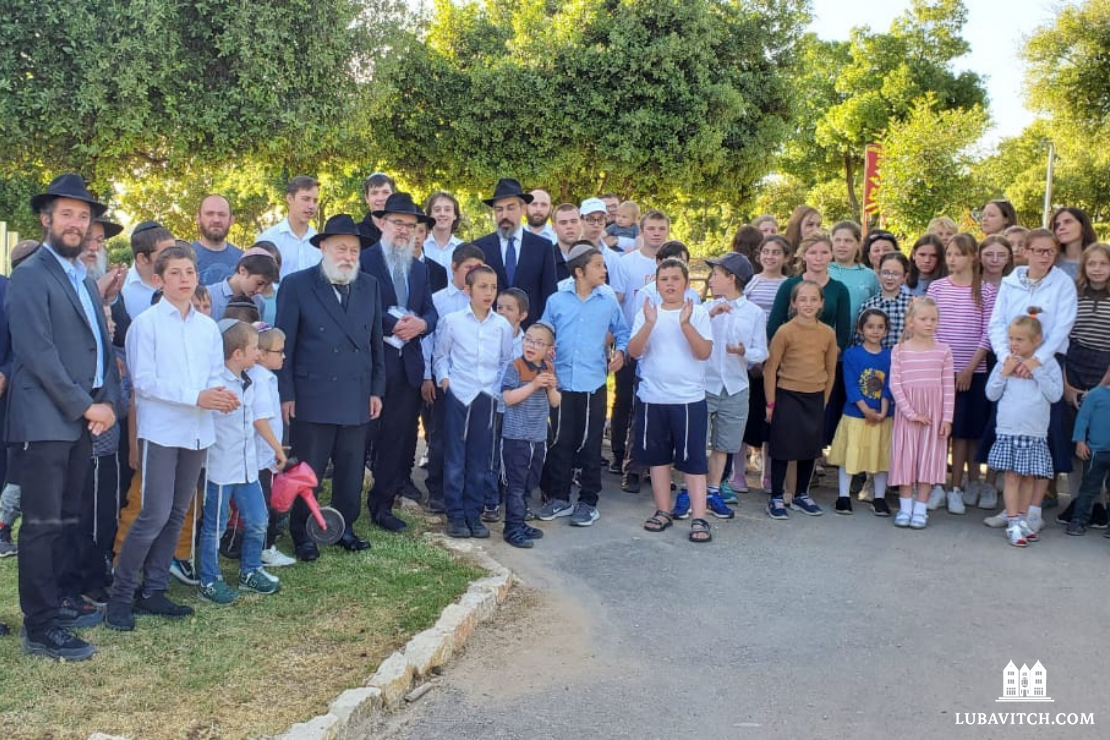On Tuesday, a delegation from Machne Israel, led by Rabbi Yehuda Krinsky, traveled to quiet Nes Harim, where the Wilhelms, Alumim directors Zalman and Malki Bukiet, and the ninety Ukrainian orphans and adult refugees reside. He was accompanied by Rabbi Shmaya Krinsky and Machne board member Rabbi Yosef Friedman.