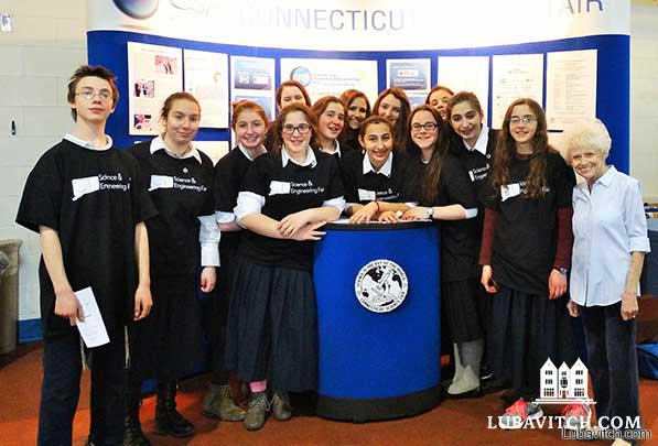 Under the guidance of Mrs. Karen Howell, science teacher at the Chabad day school, 13 seventh and eighth grade students received awards for their outstanding science projects. Seventh grade team, Sarah and Mindel Yaffe, created a project on the Analysis of Moisture and Retention of Body Lotions and the Correlation to Microbial Growth,and took first place prize in the Life Sciences team division. Students received trophies, prizes and recognition from the world of science.