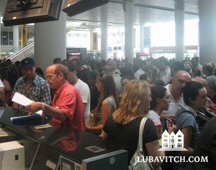 Though his visas were in order, the person at the counter “gave us some excuse for why she wouldn’t let us through, and insisted that we go to the back of the line. There were some 700 people on line,” says a frustrated Yitzchak, and his wife and children couldn’t stand that many more hours. They went back home.