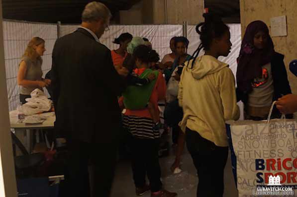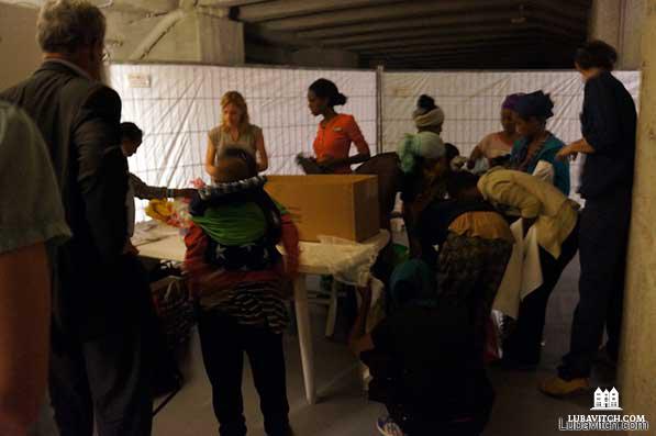Over the past few weeks, hundreds of Christian and Muslim refugees from African countries fleeing ISIS are finding shelter in what is now a memorial for those murdered by the Nazis. Chabad in the city is feeding them.