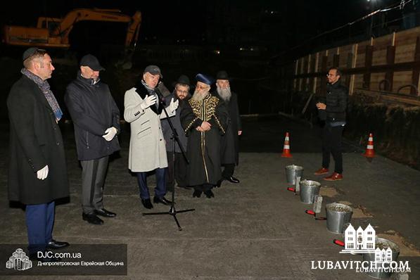 Yesterday, Chabad of Dnipro, Ukraine, laid the foundation for an apartment complex located near the iconic Menorah Center, one of the largest Jewish community centers in the world. The project is being sponsored and led by Jewish community board member Mr. Nathan Zolotorevzki, president of Chabad’s youth movement in Ukraine, in partnership with Dnipro’s Chief Rabbi Shmuel Kaminezki.