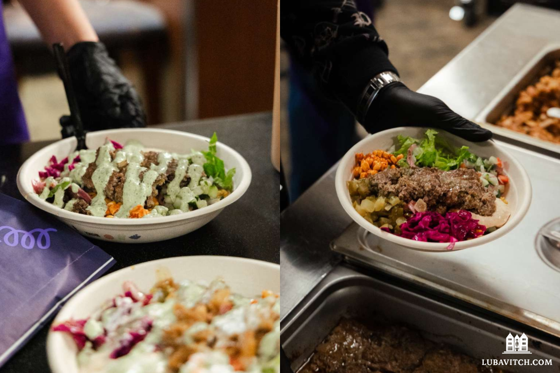 Yalla draws around 450 customers a day who come for the fresh, quality kosher fare and a place to meet between classes. The restaurant is also certified halal, attracting Muslim students as well. It creates what Rabbi Cunin describes as “a crossover of cultures — because everyone can agree on good food.”